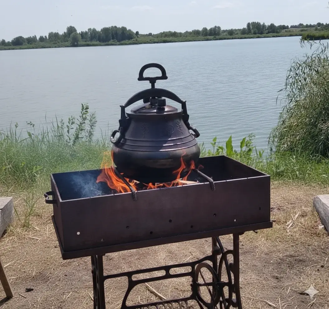 для семьи лучше брать «с запасом» — еда в казане не теряет вкус при разогреве.